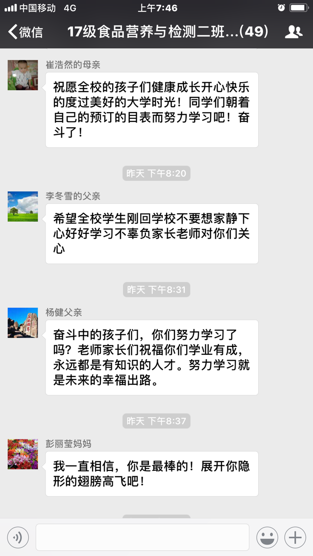 从征集的家长寄语中可以看出,家长们对孩子都抱有很大的期望,希望他们能够健康成长并有一个好的将来,同时,家长们也对学校和老师表示诚挚的感谢,谢谢老师们的辛苦付出。“心连心,共育人”工程从寒假建立微信圈开始到家长寄语征集活动结束为止已初见成效,家长们通过微信圈能及时与班主任老师交流沟通,了解孩子在学校的近况,班主任老师也能通过微信圈向家长了解一些学生在家中的表现,架起了家校沟通的桥梁,强化了beplay(中国)—家长—学生三方互通互联,真正达到家校一体心连心,三方互动共育人的效果。(孙术森供稿)