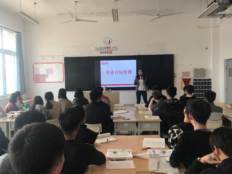 动员会上,校企合作班企业教师对学生做了动员,介绍了为什么树立学业目标,如何树立目标以及如何执行目标。确立目标是学业成功的起点,不树立学业目标,缺乏学习方向,学习则没有收获感、成就感。在树立目标时要运用smart原则,即目标应是具体的、可以衡量的、可实现的、现实性、有时限,五项原则缺一不可。执行目标过程要有学习记录、学习复盘总结、学习资料留痕,尤其是要有执行力,设定目标就要去高效执行,这样才能使目标具备实现的可能。本学期的学业目标,分别从专业课、外语课两方面设定。先设定学期目标,然后具体细化到月目标、周目标,每周每月总结达标情况,进行复盘总结。通过树立目标、执行目标、达标回顾、复盘总结等“学业目标管理过程”,实现“以目标、促学习”,提升班级学风建设。