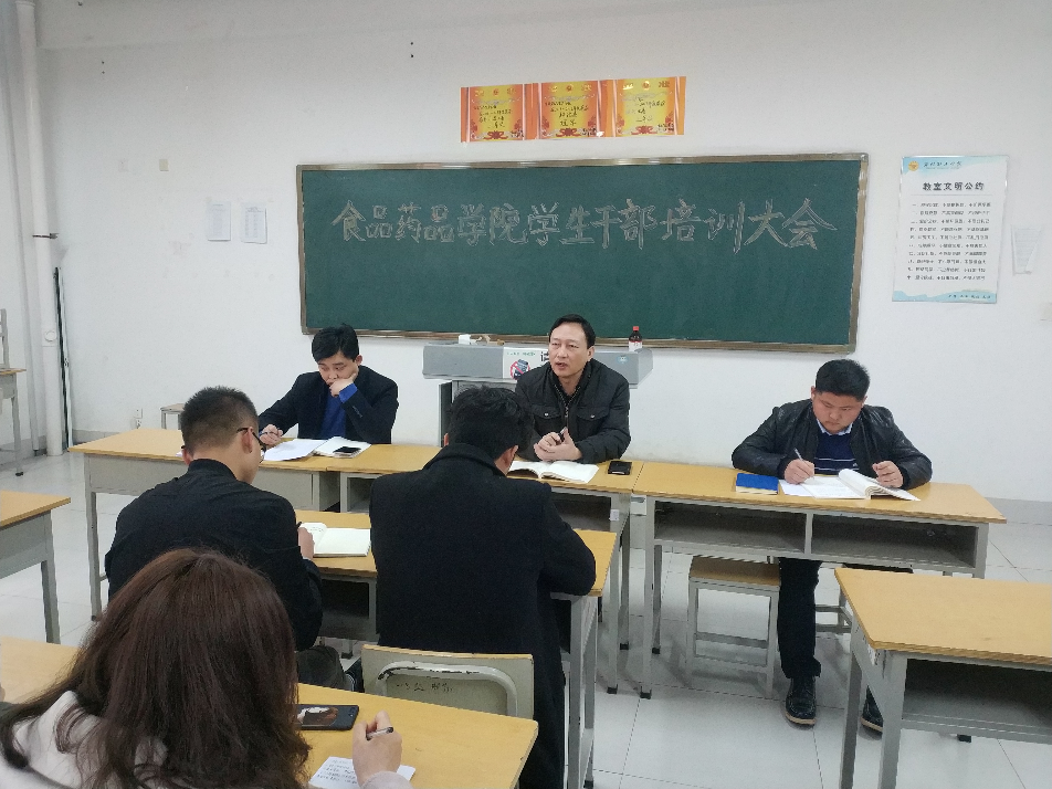 开学伊始,为让学生干部尽快进入工作状态,提高学生干部的工作能力,3月13日下午,食品药品beplay(中国)在惠泽1号楼B116召开学生干部培训会。主管学生工作副院长和全体辅导员参加,大一、大二各班班委及全体学生会成员参加。