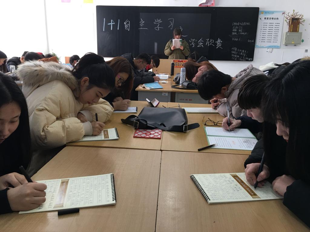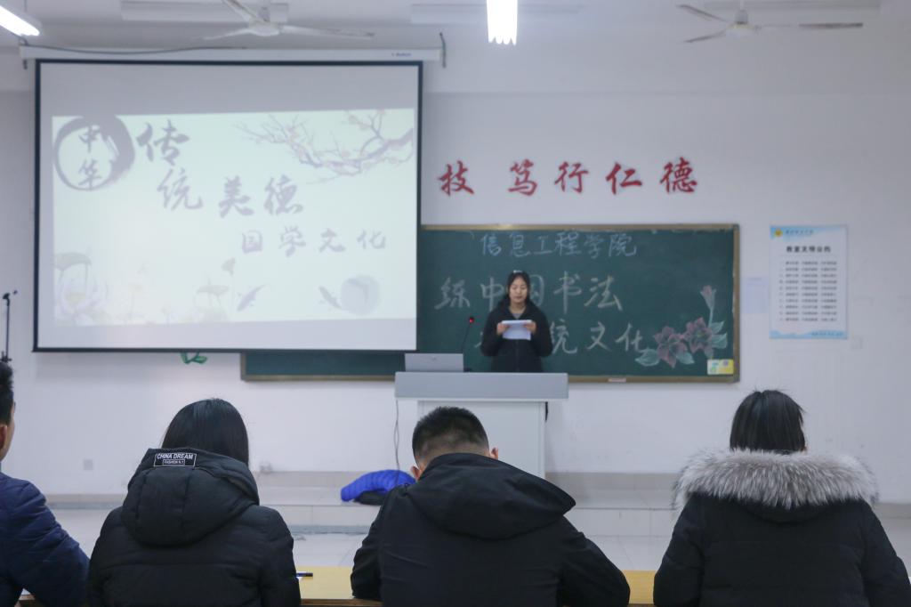 信息工程beplay(中国)“1+1”自主学习活动由1项必选项目和1项自选项目构成,其中,必选项目包括书法和演讲口才两项,自选项目包括礼仪、舞蹈、相声、合唱团、乐器等共二十五项,学生从必选项目和自选项目中分别选取一项利用自习时间和课余时间进行练习活动。1月15日以来,信息工程beplay(中国)组织各班级分别以“奋斗的青春最美丽”演讲比赛和“练中国书法 承传统文化”书法展示比赛的形式对必选项目进行了考核总结,组织各自选项目导师根据项目特点结合日常活动开展情况进行了考核总结,并将每名同学的考核成绩计入个人综合素质测评。