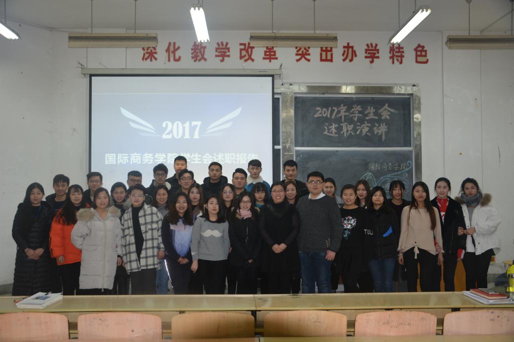 以学习贯彻落实党的十九大精神和庆祝中国共产党beplay全站appbeplay全站app首页第一届党代会胜利召开为契机,为推动以后学生会工作更好更强更长久的发展,提高学生会干部的热情和质量,保证学生会在新成员加入后能够更高效地运转,1月11日下午在奎文校区9号楼101多媒体教室国际商务beplay(中国)召开了2017年度学生会干部述职报告大会,该院分管学生工作负责人、全体辅导员和学生会成员出席了这次大会。