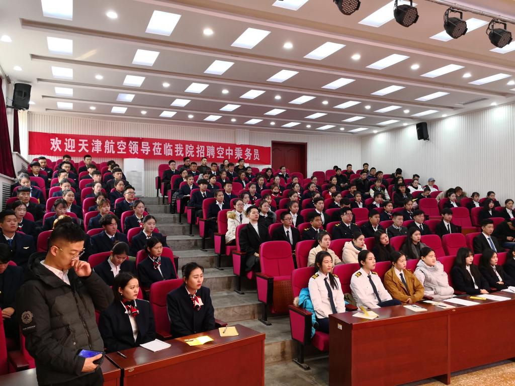 12月13日,天津航空有限责任公司领导莅临国际商务beplay(中国)举行乘务员、安全员校园招聘。据悉,这是天津航空首次在我院举行校园招聘会,我院空中乘务专业的二百余名同学积极报名参加宣讲、面试,