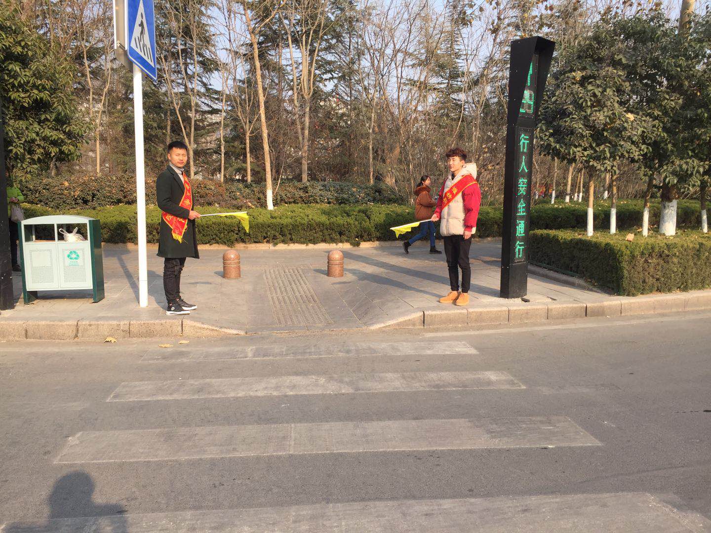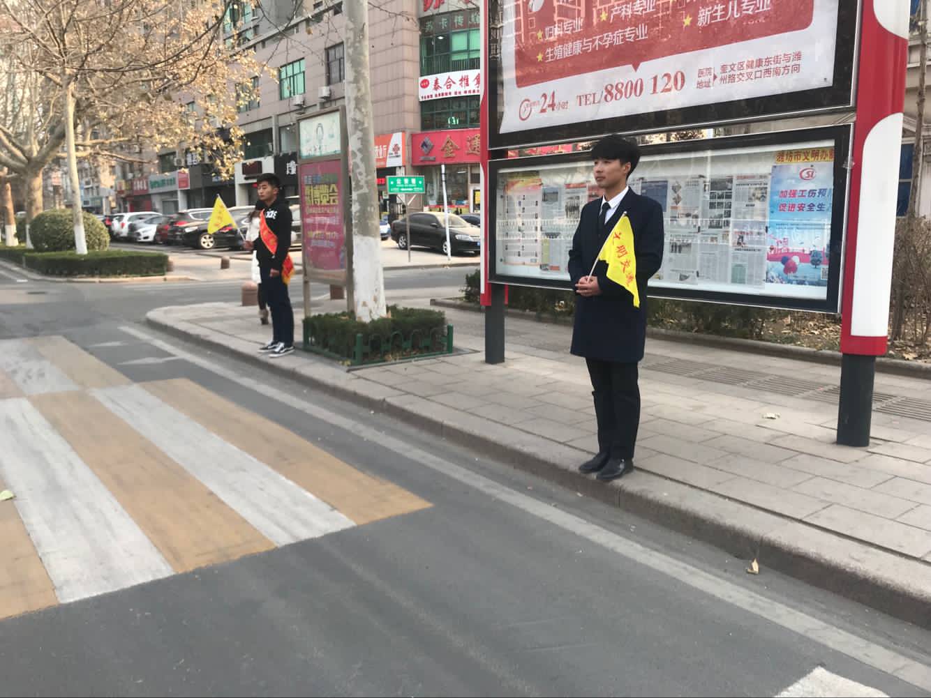 国际商务beplay(中国)高度重视,前期主动和奎文区交警大队进行对接,对参加志愿者活动的同学进行了统一培训。同学们热情高涨,竞相参加活动,用实际行动来践行十九大精神。志愿者们身披绶带、手执文明交通旗帜,在学校周边的十字路口、居民小区、小学、幼儿园等周边人流密集、交通监考设施的路段斑马线开展活动。志愿者们向行人宣传文明、传播文明,劝阻发生的不文明交通行为;引导车辆、行人各行其道,遵守交通法规;引导机动车行经斑马线时减速行驶,遇行人正在通过斑马线时停车让行;引导非机动车不逆行,不占用机动车道,在斑马线和人行道上推行;引导行人过马路时走斑马线,不闯红灯,不横穿马路,不翻越护栏;对不听劝阻的违法交通行为,配合交通管理部门取证、曝光。活动自十月中旬开始,已经持续了两个月,收效显著。尽管天气寒冷,志愿者们没有一人叫苦喊累,在自己的岗位上保持得体的站姿,用文明用语和引导手势开展文明劝导活动。