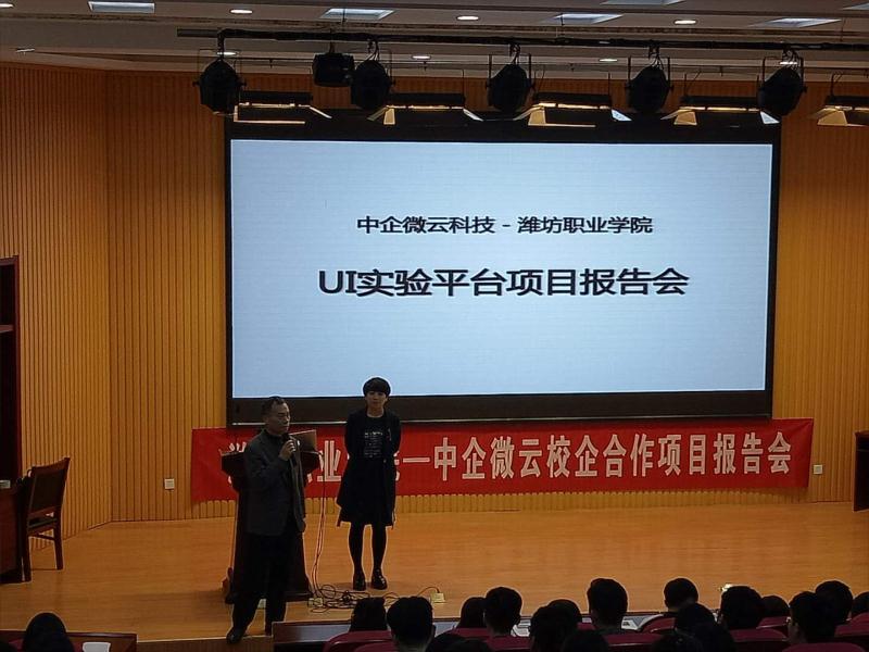 11月2日下午,文化创意beplay(中国)在奎文校区大学生创业中心一楼路演厅举办了中企微云UI实验平台项目报告会。文化创意beplay(中国)主要负责同志和中企微云(北京)科技有限公司华北市场总监等参加报告会。文化创意beplay(中国)2016级文创类专业180多名学生参加。