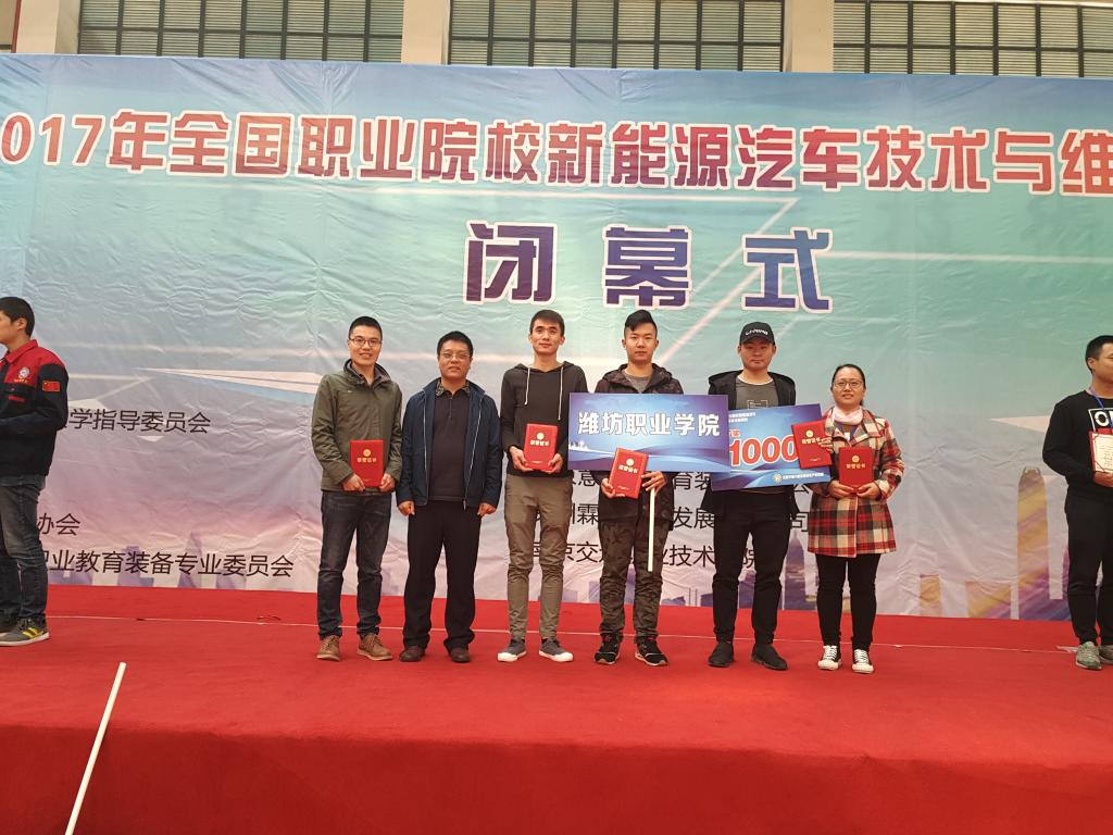 2017年全国节能与新能源汽车产教联盟职业院校新能源汽车技术与维修技能竞赛于10月29日在南京举行,来自全国各地的50多支职业院校代表队近200名选手参加了此次比赛。我院汽车beplay(中国)参赛选手查斐然、马义朋、王文龙获高职组三等奖的好成绩。