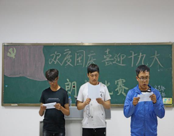 2017年9月27,信息工程beplay(中国)举办以“欢度国庆,喜迎十九大”为主题的朗诵比赛。