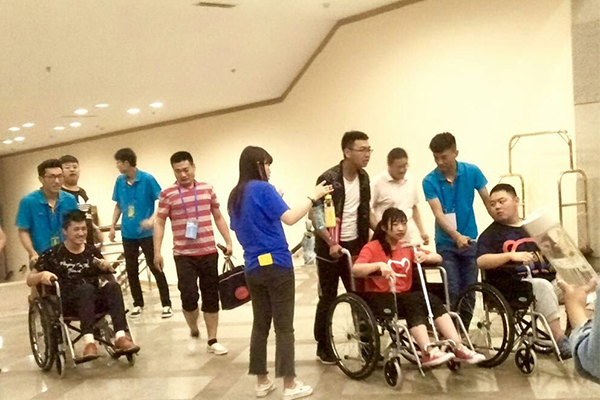 山东省第九届残疾人艺术汇演是由潍坊市承办的全省首次大规模的残疾人文艺汇演。活动于6月5日至10日在潍坊富华大酒店国际会议中心一号剧场举办。全省共有18支代表队参演,演职与服务人员共计700人左右,食宿在富华大酒店和金茂国际大酒店,志愿者的工作是在两个酒店全程服务参与此次汇演的残疾人演员,为他们的入住、就餐以及演出提供帮助。汇演前夕,国际商务beplay(中国)及时制定此次志愿者活动实施方案,多次召开会议,对学生进行上岗前的指导和培训,并确定专任带队老师,全程参与志愿者活动,以确保志愿服务的顺利进行。