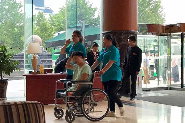 6月5日上午,学生们分别乘专车到达富华大酒店和金茂国际大酒店,开始他们的志愿者服务。他们和各地市的残疾人演员的联络人对接,接待残疾人演员,帮助他们办理入住,陪同他们就餐、彩排、比赛、演出等,为参演残疾人及工作人员提供优质食宿服务、演出场地服务、安保服务,确保他们的饮食安全、消防安全、治安安全。学生们满怀活力和激情,用他们的优质服务,擦亮志愿者服务新名片。(钮洪敏供稿)