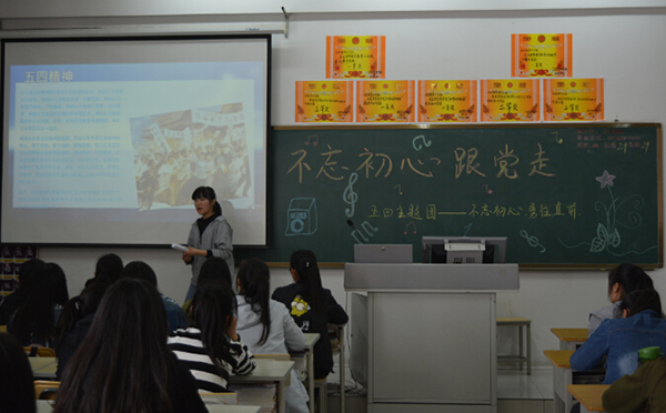 各团支部把中国青年网和“青年之声”专题网页作为学习平台,通过召开主题班会、组建学习小组、举办报告会等形式深入了解国史、党史、团内相关文件和五四青年精神,并展开学习讨论,增强了同学们作为共青团员对“初心”内涵的理解,坚定了向党组织靠拢的决心。该院还组织广大同学利用课外活动时间开展“不忘初心跟党走·文明举止伴我行”礼仪操学习活动,从基本的礼仪规范入手,学习日常文明礼仪基本动作,在锻炼中接受文明礼仪教育,并将通过礼仪操大赛加强文明礼仪普及力度。同时,手抄报、海报设计比赛的作品也在征集中,让同学们在创作过程中充分发挥创造力和想象力,以另一种形式表达爱党敬党跟党走的信心。