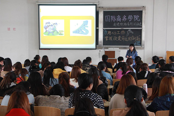 3月30日,国际商务beplay(中国)举办“走进职场”活动第二期讲座。讲座主题为“用心工作,掌握改变命运的‘钥匙’”,邀请中澜集团职场精英洪小莉女士主讲。