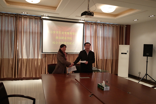 为促进产学研一体化建设,11月16日,食品药品beplay(中国)负责同志和部分骨干教师到乳品企业走访交流,与山东阳春羊奶乳业有限公司董事长董玉坤、潍坊紫鸢乳业发展有限公司董事长孙志强等企业领导进行了座谈交流。