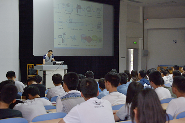 6月22日下午,机电工程beplay(中国)邀请潍坊滨驰电子科技有限公司高级工程师刘君伟在滨海校区举办了SMT技术专业知识讲座。该院2015级和2014级应用电子技术专业全体同学和其他专业部分学生代表参加讲座。