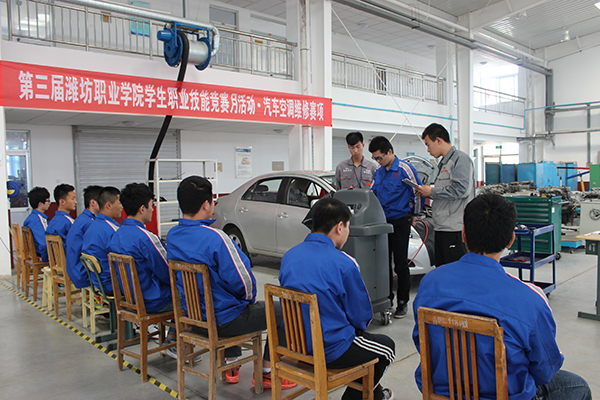 汽车工程beplay(中国)第三届学生职业技能竞赛月活动,近日在该院实训车间拉开帷幕。通过前期准备,2014、2015级汽车检测与维修技术、汽车制造与装配技术和汽车电子技术等专业近800人次参加了选拔活动。4月14日,选拔出40余名选手参加了汽车检测与维修项目、汽车空调维修项目的决赛。