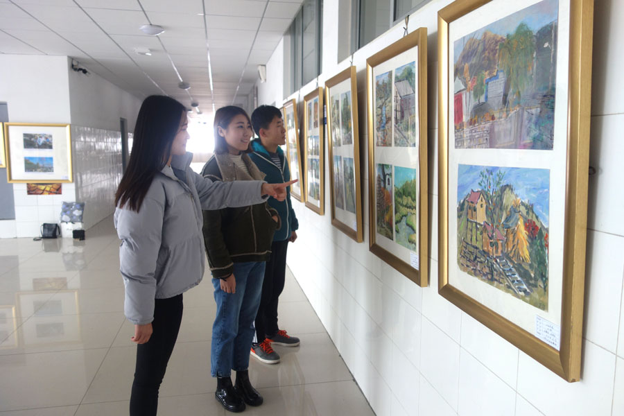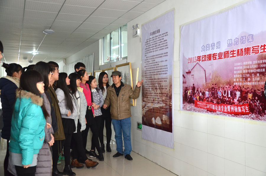 12月28日,在滨海校区惠泽教学楼B区一号四楼走廊,师范/文化创意beplay(中国)2015级动漫设计与制作专业百名师生青州杨集美术写生作品展览隆重开展,吸引了广大师生纷纷驻足参观,赢得了一片叫好和点赞。