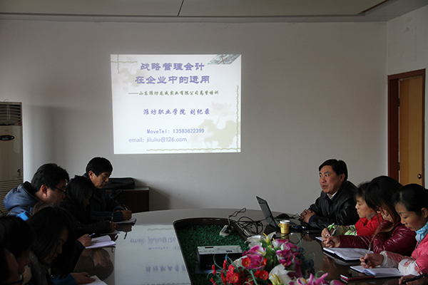 12月5日,经营管理beplay(中国)科技服务团队的有关老师,利用周末时间,到校企合作单位山东龙威实业有限公司开展服务活动。该公司的高管及财务、营销人员50余人参加了活动。