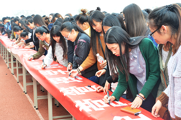 仪式结束后,经营管理beplay(中国)全体学生纷纷签名表达勤学报国的决心。(王婷婷供稿)