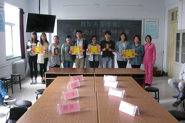 此次辩论赛共有8个参赛队伍参加,历时一周。比赛通过抽签的方式决定分组进行,经过初赛8进4、复赛4进2,最终2013级应用韩语班和2013级旅游管理班会师决赛。决赛围绕“手机的利与弊”为辩题展开。比赛现场气氛活跃,双方辩手在紧张激烈的竞争中不乏机智幽默,以生活中的事实和热点时事为例展开辩论。辩手们明锐的视角、睿智的言辞,博得评委和现场观众的阵阵掌声和一致好评。