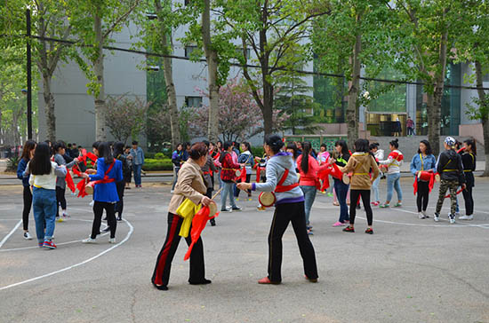 为丰富学生的校园文化生活,让学生感受中华民族悠久的历史文化,培养学生的团结协作精神,4月11日下午,师范/文化创意beplay(中国)邀请原潍坊市艺术团团长张慧军老师来该院指导腰鼓社团的活动。