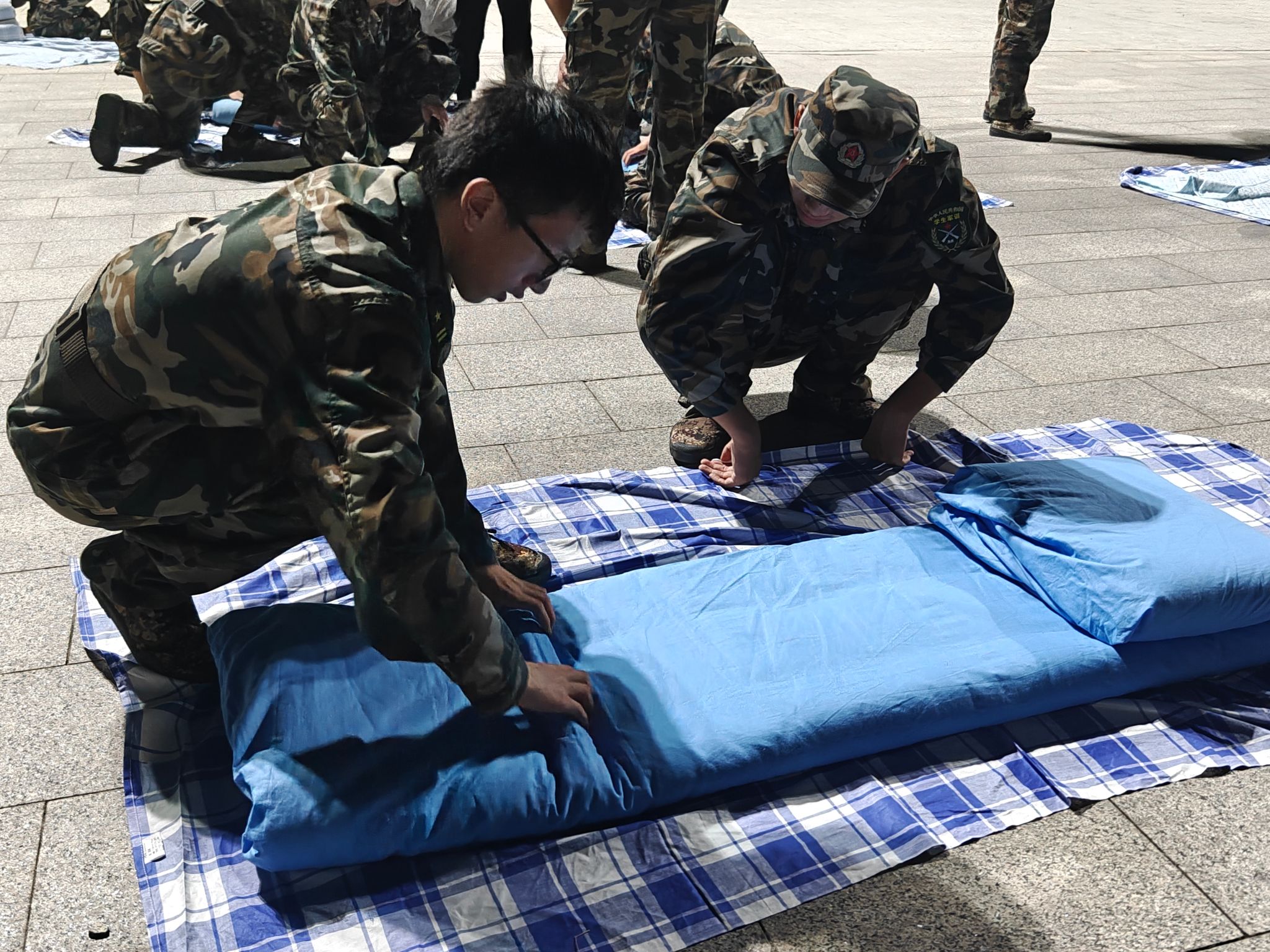 培训过程中,“内务导师”们首先进行了标准示范。他们动作娴熟流畅,讲解细致入微,从铺平压实、测量划线到折叠抠角、整理塑形,将叠军被的每个步骤拆解到位,并分享了许多实用小技巧。在随后的“一对一”指导环节,学长学姐们深入新生中间,耐心解答疑问,手把手纠正动作,营造了轻松愉快的学习氛围。新生们在学长学姐的亲切指导下认真练习,互帮互助,内务整理能力得到快速提升。