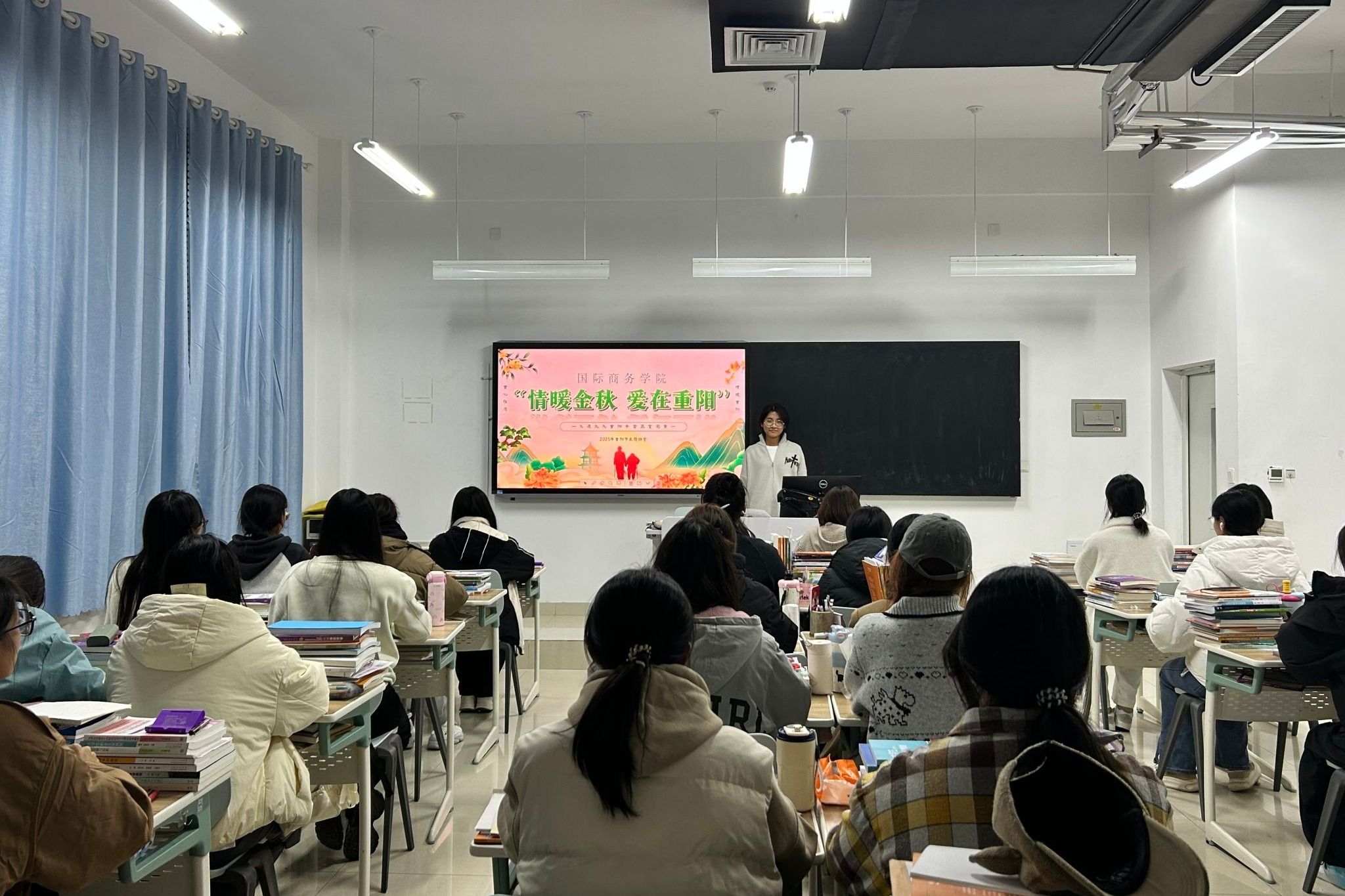 活动伊始,国际商务beplay(中国)各班召开“情暖金秋,爱在重阳”主题班会。班会上,辅导员通过讲解重阳节的文化习俗、分享孝心故事等形式,将孝亲敬老的理念根植于学生的心中。在“连线话重阳”环节中,同学们纷纷与家人连线,送上了他们的节日问候,暖暖亲情在方寸屏幕间流淌。
