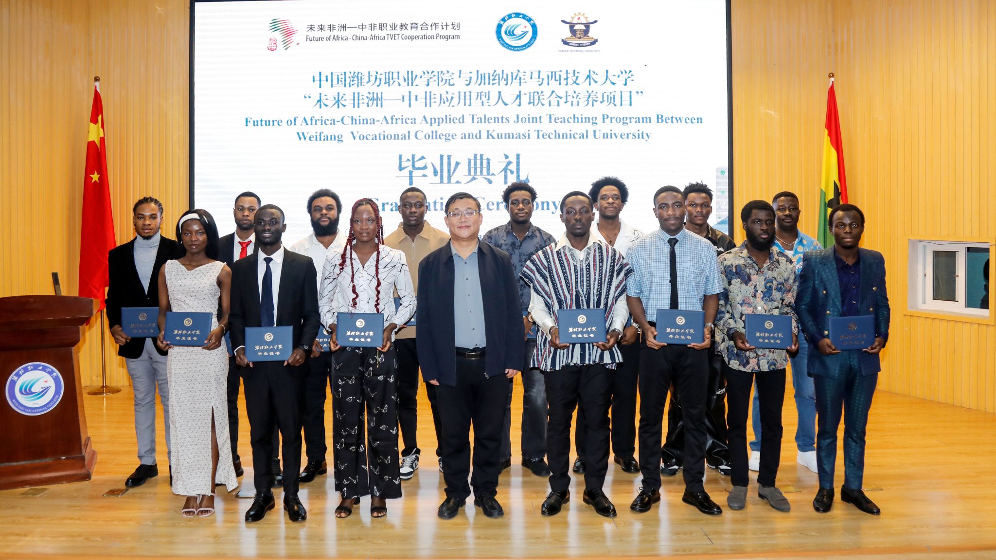 1月9日下午,beplay全站appbeplay全站app首页“未来非洲—中非应用型人才联合培养项目”2025届学生毕业典礼在奎文校区6号楼报告厅举行。潍坊市政府副秘书长王霞、beplay(中国)党委副书记韩瑞东、中共潍坊市委外事工作委员会办公室二级调研员刘国庆、潍坊市公安局出入境管理支队支队长王献平及潍坊市教育局相关领导出席典礼。加纳库马西技术大学校长加布里埃尔·多莫、国际事务联络处处长赛夫·门萨线上参加。beplay(中国)办公室、国际交流与合作处和机电工程beplay(中国)等相关部门负责同志及国际教育beplay(中国)师生参加典礼。beplay(中国)副院长陈美霞主持毕业典礼。