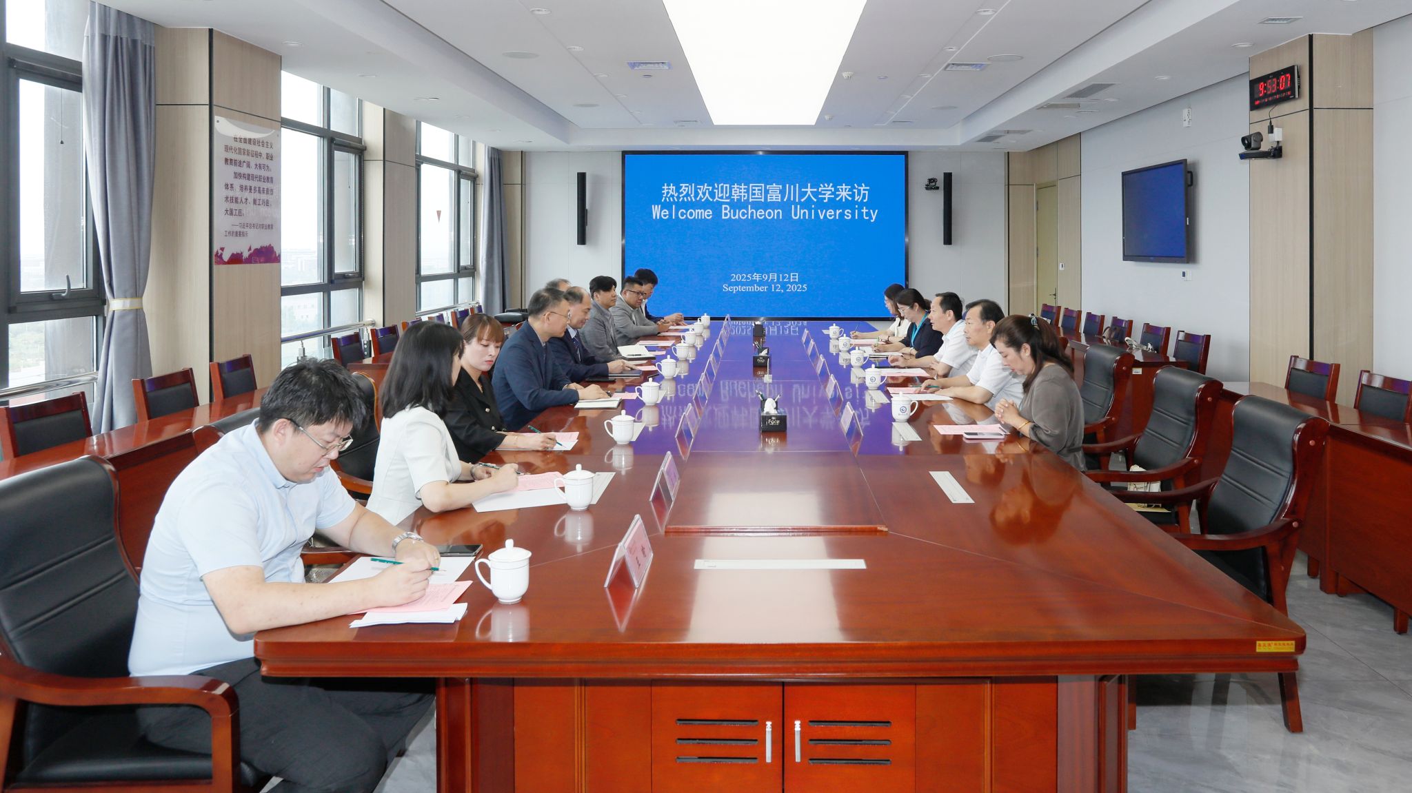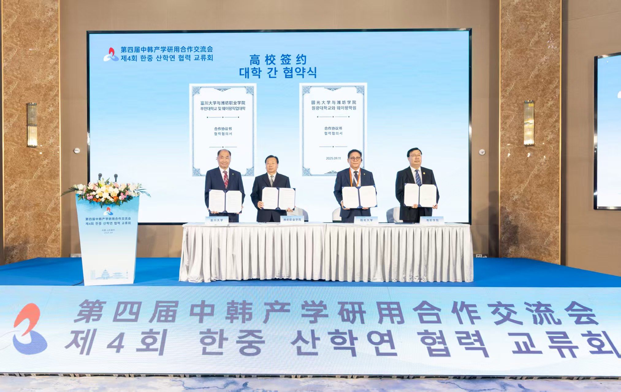 9月11日下午,第四届中韩产学研用合作交流会在潍理工酒店举行,我院党委副书记贺志强代表beplay(中国)与韩国富川大学签署合作协议。12日上午,韩国富川大学韩政锡校长一行9人来我院访问,beplay(中国)党委书记王浩、党委副书记贺志强在滨海校区会见了客人,国际交流与合作处负责人及相关同志共同参加会议。 贺志强主持会议。