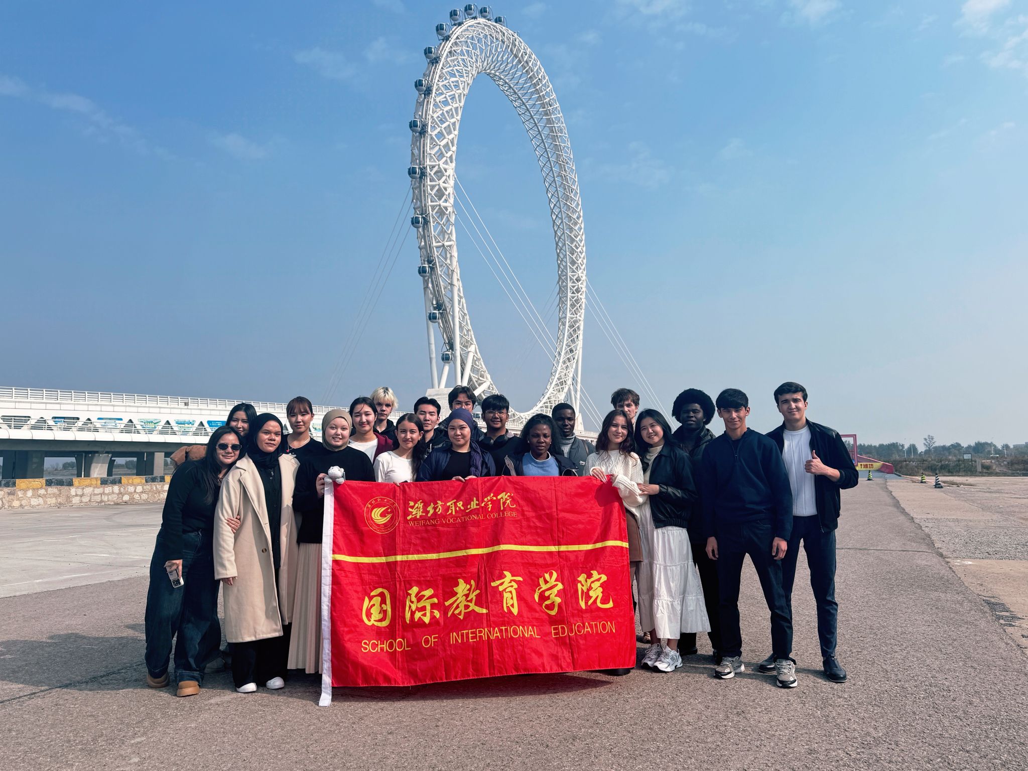 活动中,国际学生们首先走进潍坊港,在工作人员的讲解中,切身感受到港口的现代化运营与潍坊作为沿海城市的开放活力。随后,学生们来到景海果业,沉浸式探寻盐碱地苹果、葡萄等特色水果的培育奥秘。大家现场品尝了新鲜果实,对其清甜口感与优良品质赞不绝口,在味蕾的满足中直观感受到潍坊现代农业扎根特色土壤、蓬勃向上的发展活力。最后一站,学生们抵达潍坊地标性建筑——“渤海之眼”摩天轮。在缓缓上升的座舱中,大家俯瞰滨海美景,感受这座城市的发展脉动与自然风光的完美交融。学生们纷纷表示,通过活动,自己对潍坊的经济、农业发展与城市风貌有了更深入、更立体的认识。
