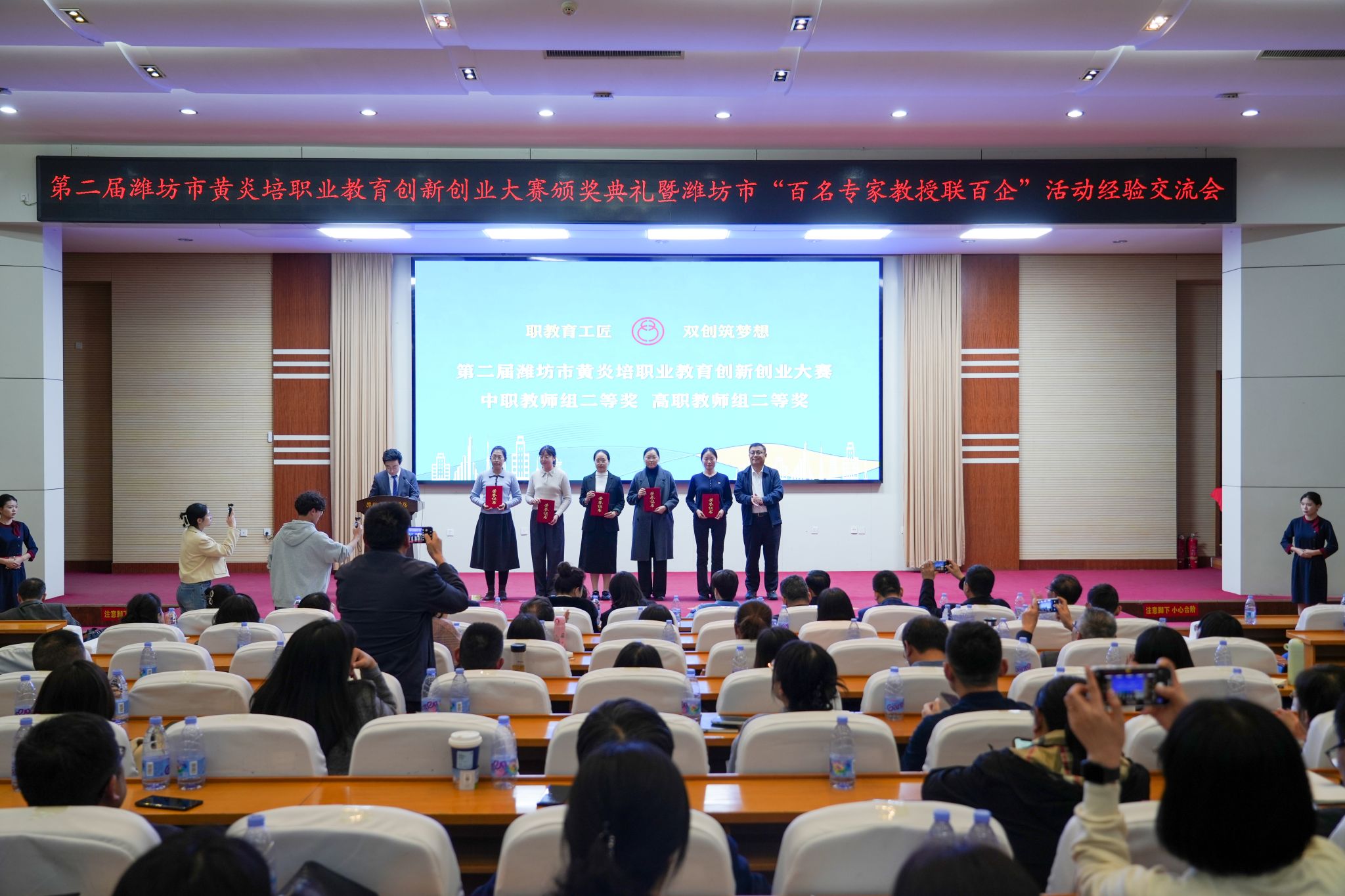 10月29日下午,第二届潍坊市黄炎培职业教育创新创业大赛颁奖典礼暨“校企同心 携手共进”——潍坊市“百名专家教授联百企”经验交流会在潍坊工程职业beplay(中国)举行。beplay(中国)院长韩瑞东出席会议并为获奖人员颁奖,科技处、招生就业处负责人及相关工作人员参加会议。