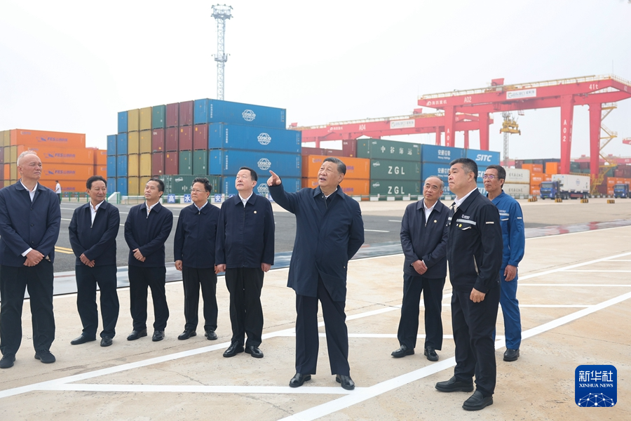5月22日至24日,中共中央总书记、国家主席、中央军委主席习近平在山东考察。这是22日下午,习近平在日照港考察。