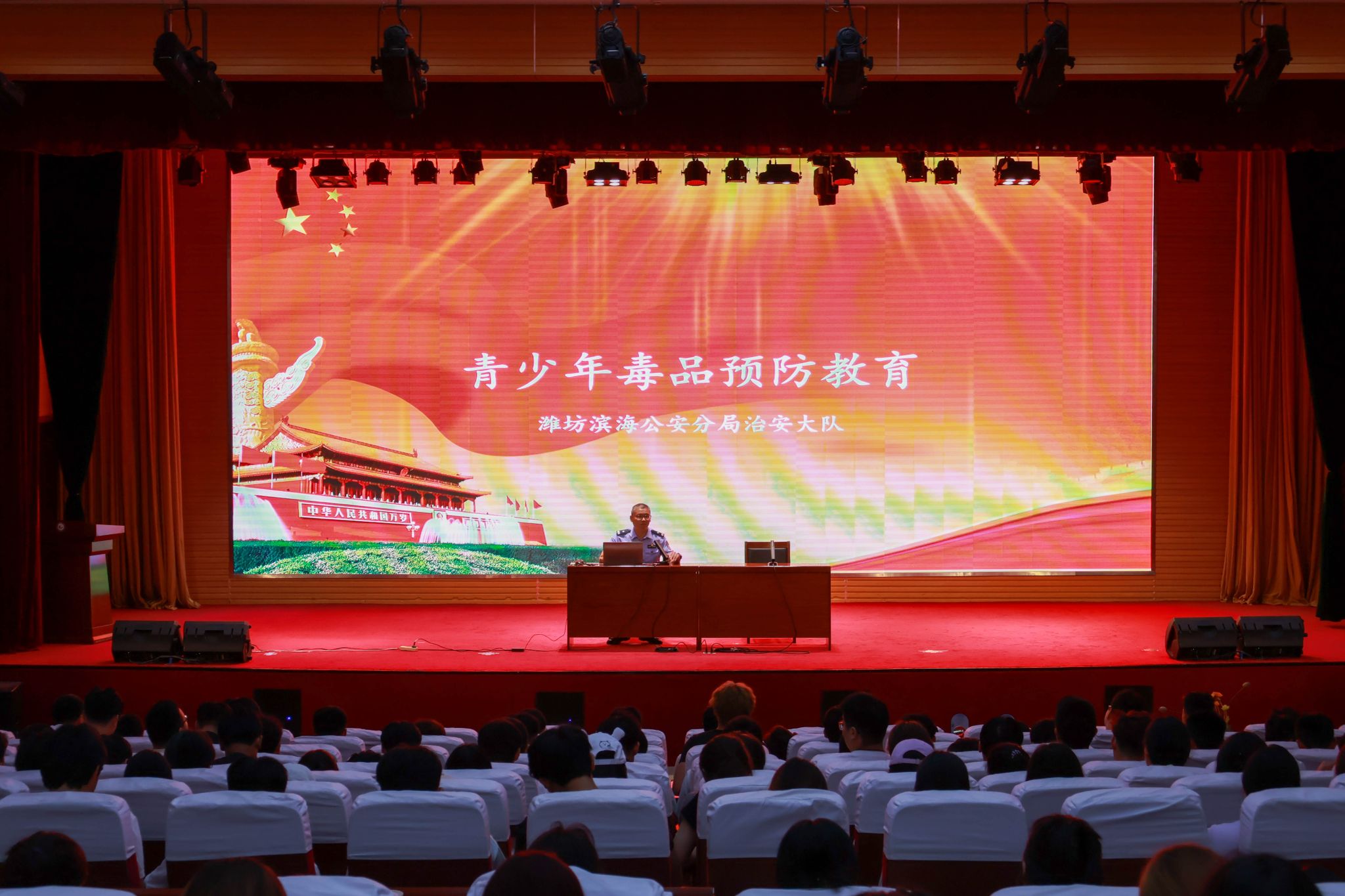 为增强学生安全防护意识,8月28日下午,beplay(中国)联合滨海区公安分局在滨海校区图书馆报告厅开展“毒品预防教育开学第一课”活动。200余名学生参加了此次活动,滨海区公安分局王东东警官担任主讲人。